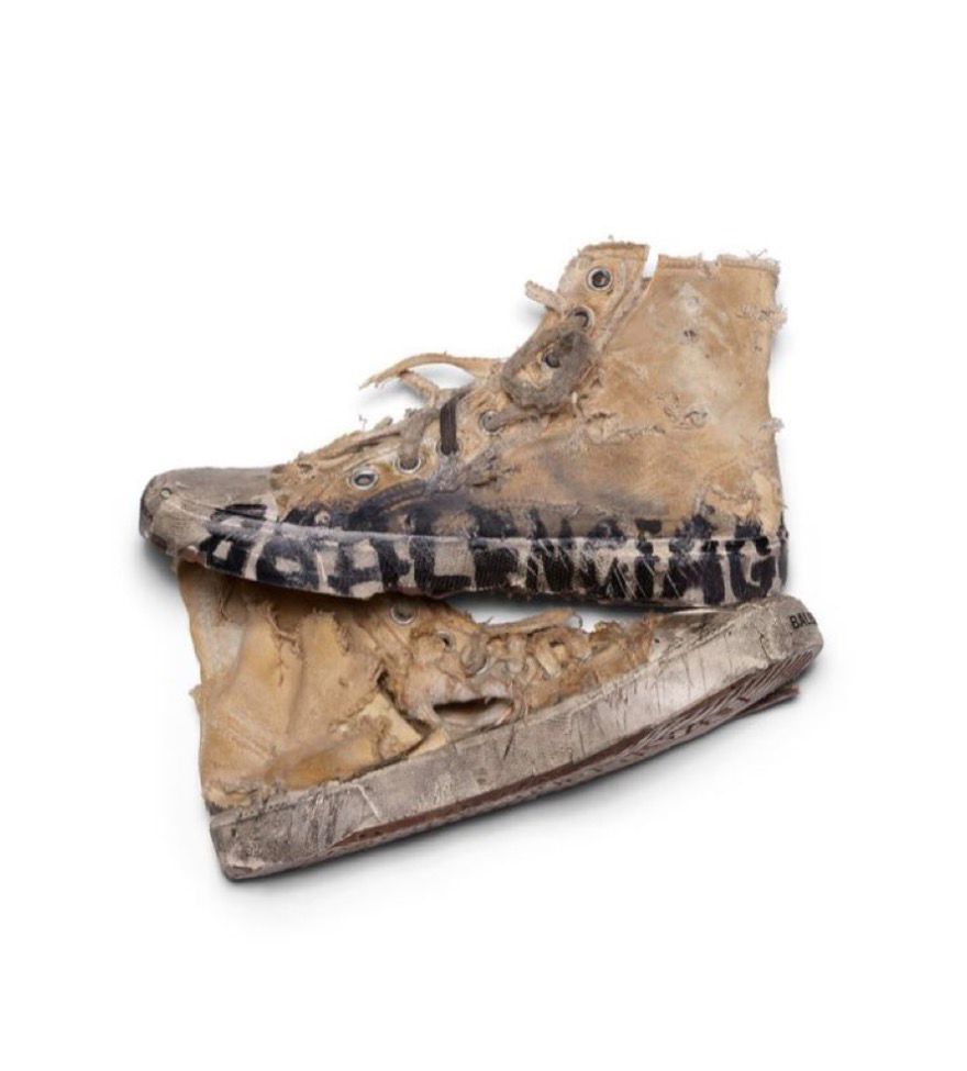 Zapatillas rotas, sucias, desgastadas, lanzadas al mercado con precios exorbitantes.